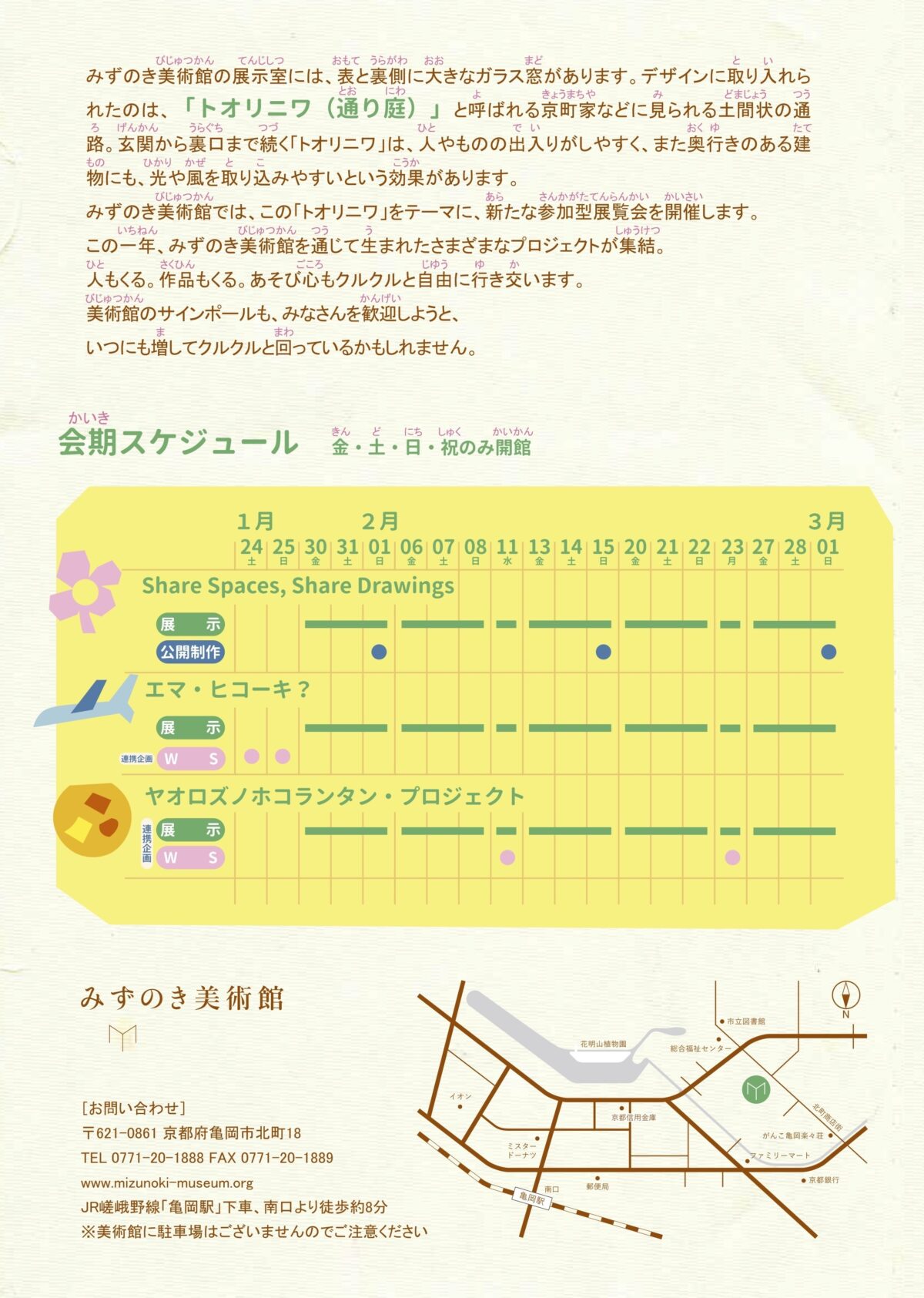 みずのき美術館では、この「トオリニワ」をテーマに、新たな参加型展覧会を開催します。